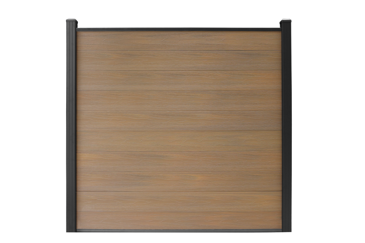 Een composiet schutting teak word helemaal compleet geleverd, het enige dat je nodig hebt is onze aluminium composiet schutting paal.